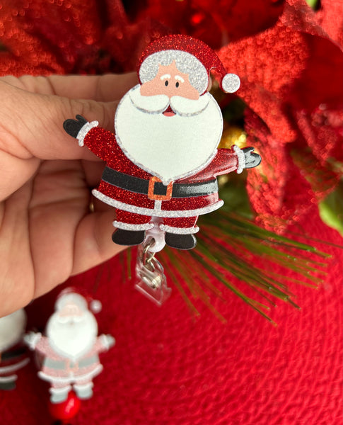 Santa Claus Badge Reel, Retractable Badge Holder, Chrismas Stocking Stuffer, Winter Glitter DR. Key Card, Hospital Staff Gift, Key Tag
