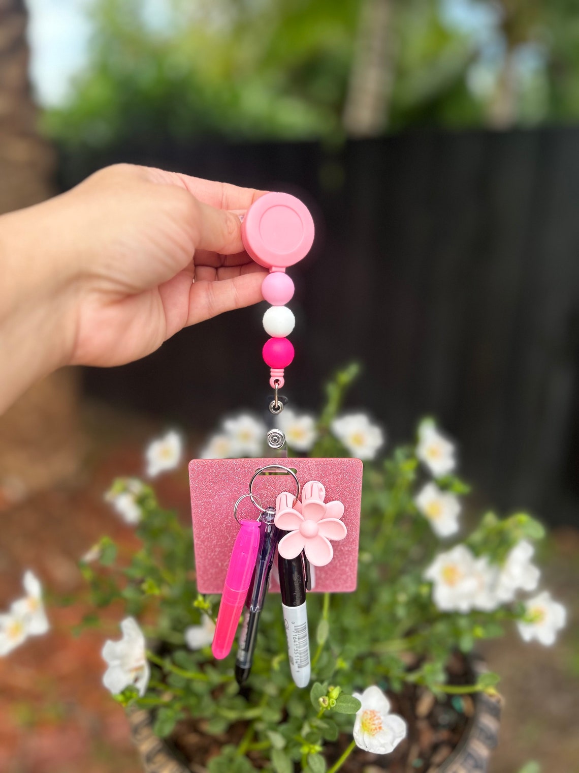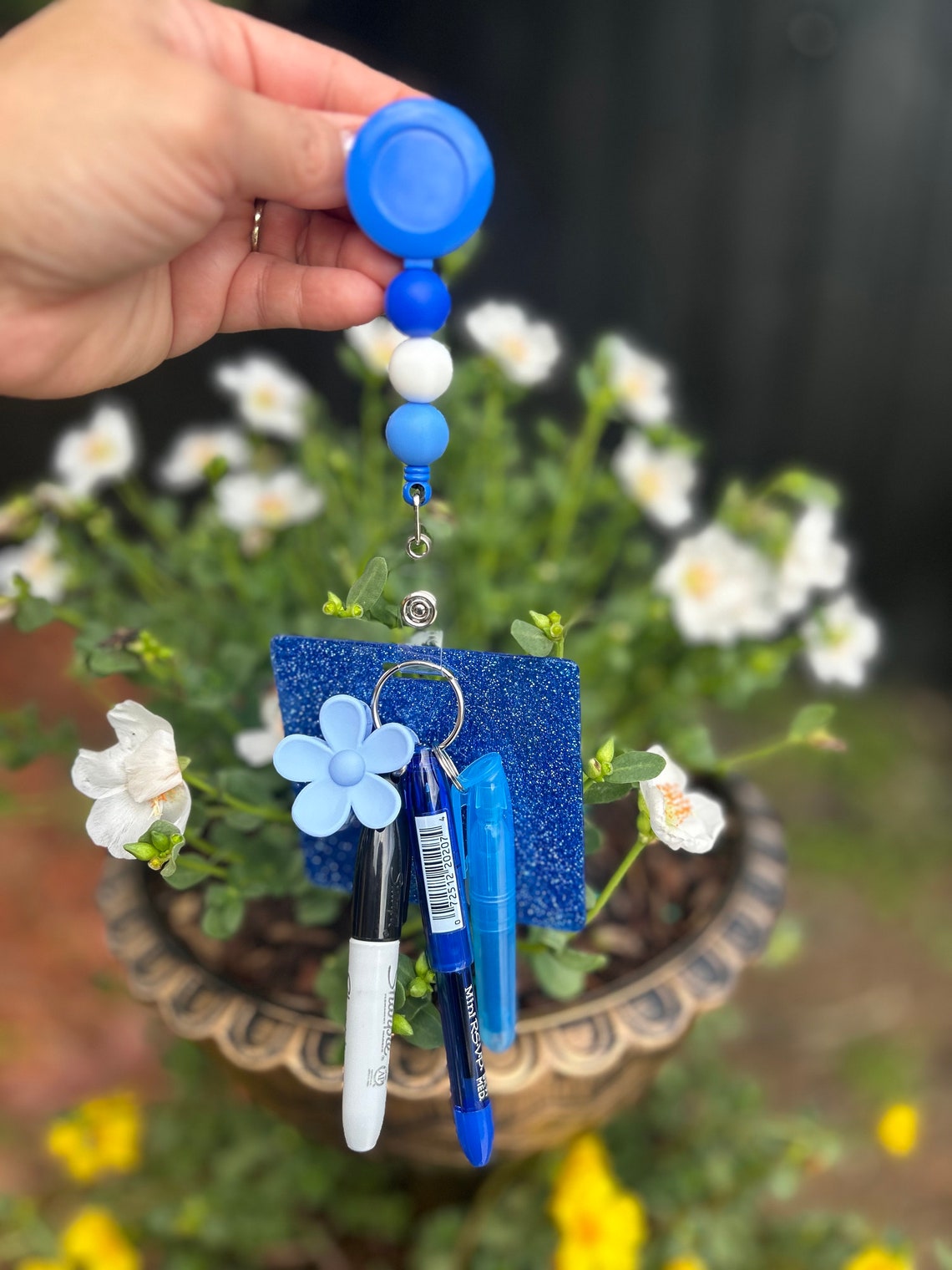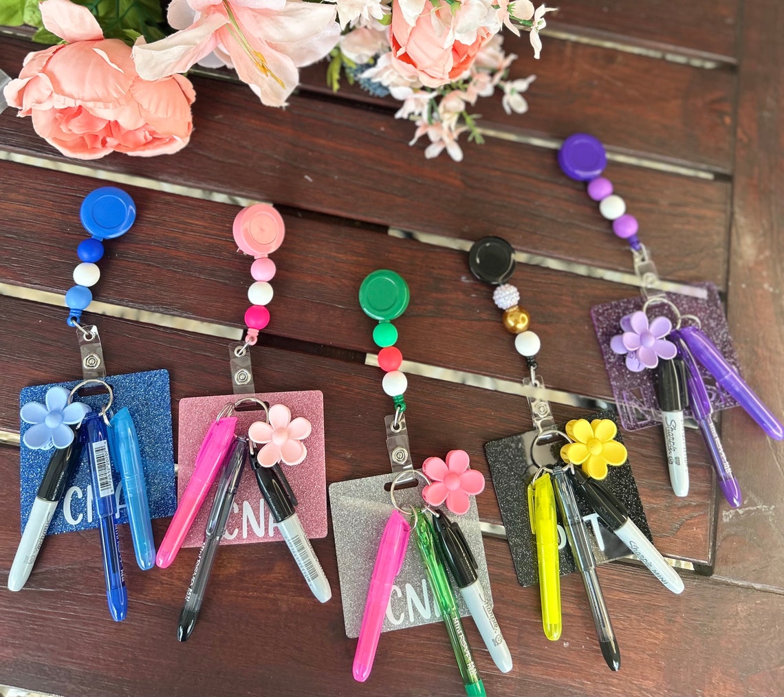 Solid Color Badge Reel and Accessories, Mini Permanent Sharpie Marker, Mini Pen, Mini Highlighter, and a Buddy Badge for Nurses, CNA, and PCT plus a matching hair clip. Build your own kit!