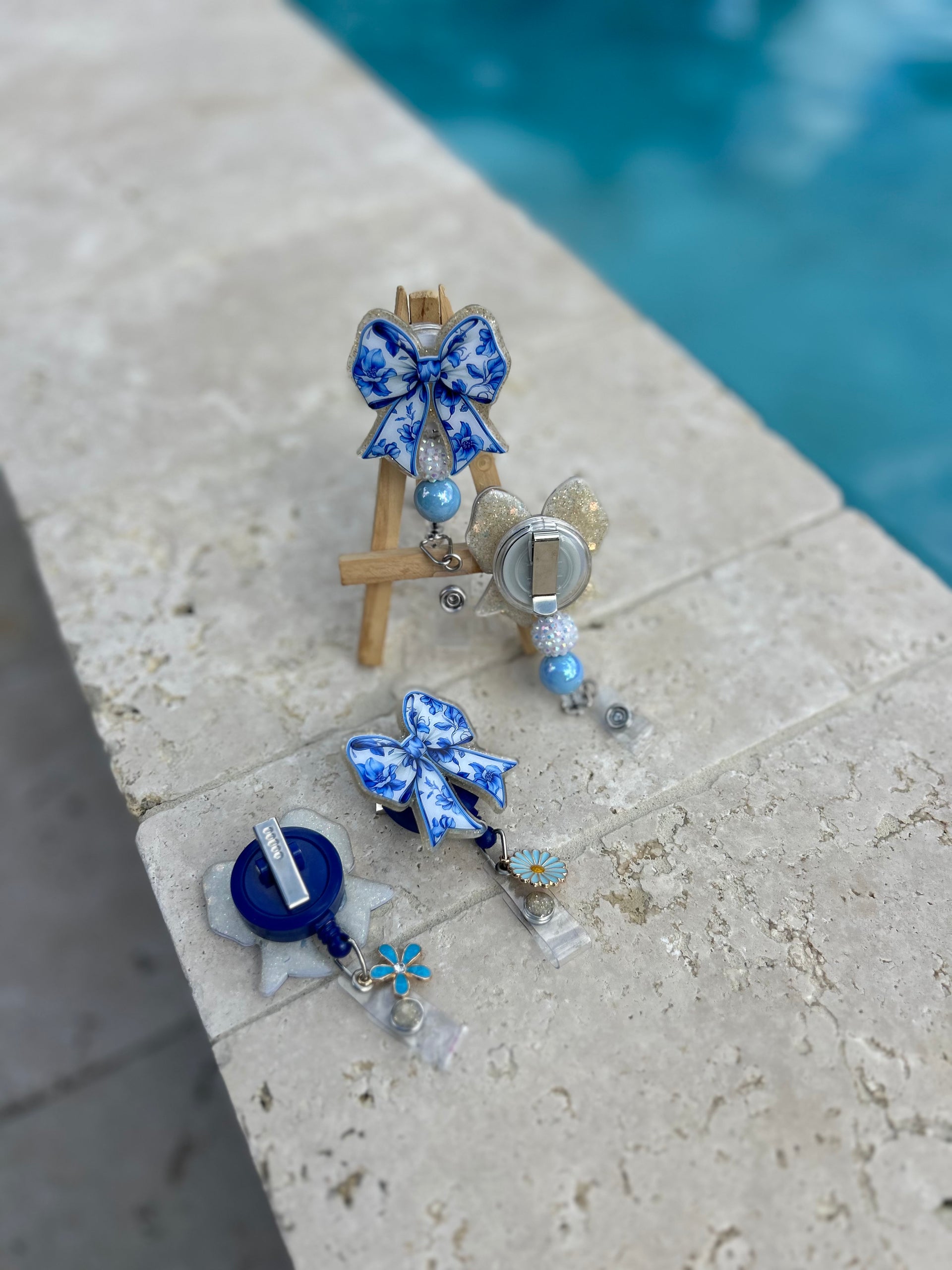 A classic blue-and-white floral bow design with a 3D effect. This one’s both elegant and fun!