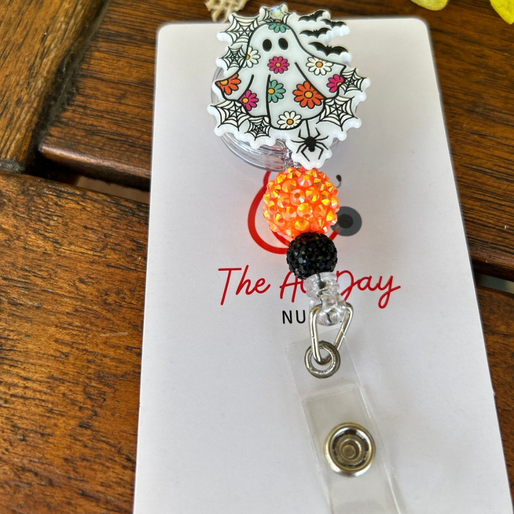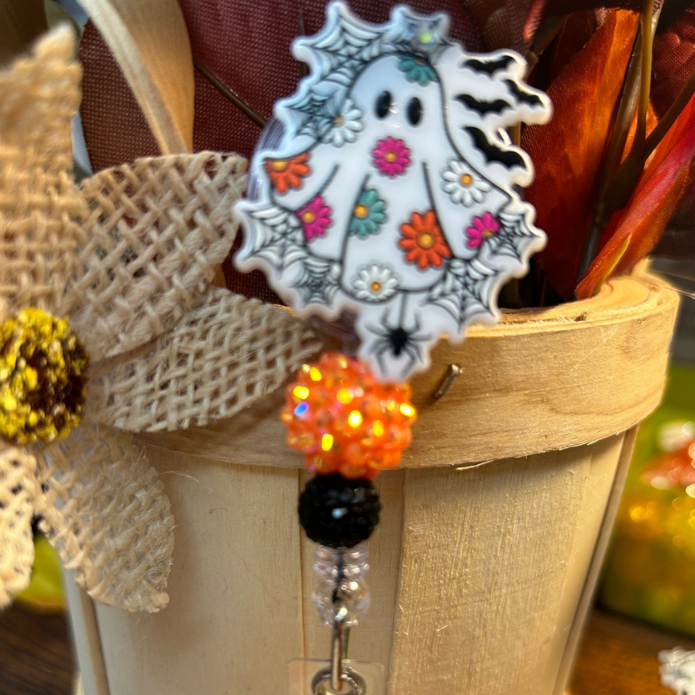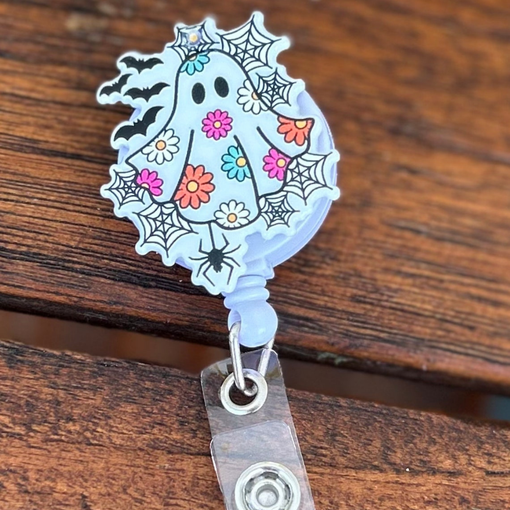- Package Includes: 1 Floral Ghost Badge Reel.