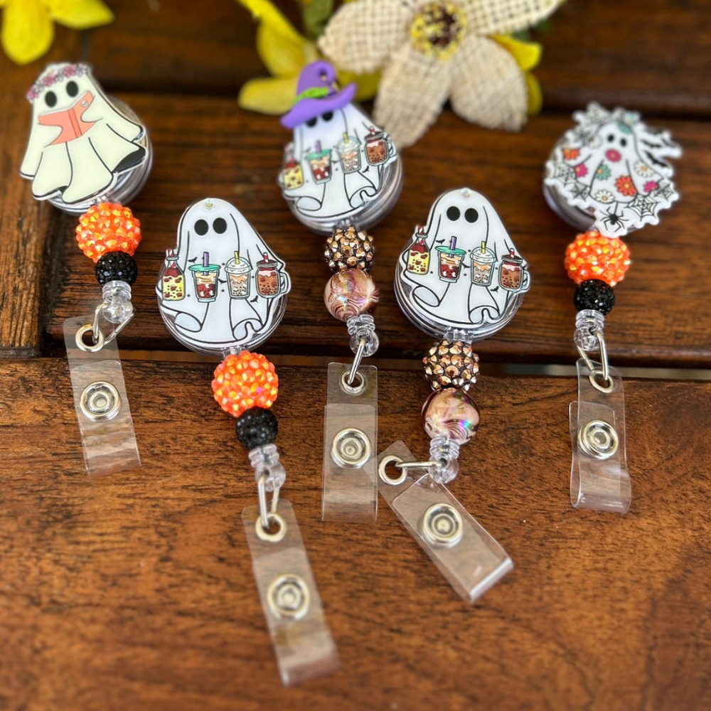 👻 Add a touch of spooky charm to your day with our Cute Floral Ghost Badge Reel! Handcrafted to order with love, these funny and stylish badge reels make a perfect accessory for anyone looking to make a statement. Choose between a beaded or non-beaded style and select either a belt clip or an alligator clip for the perfect fit.
