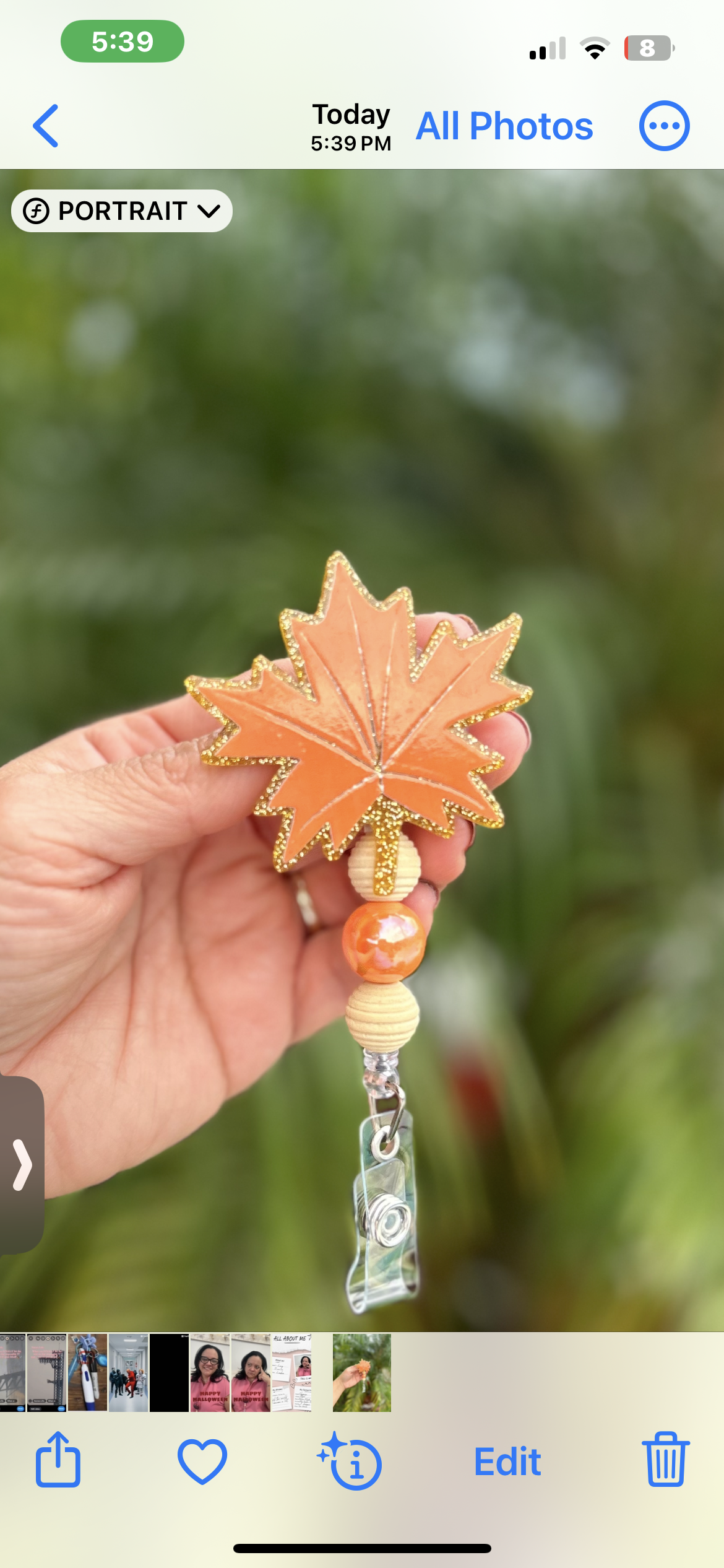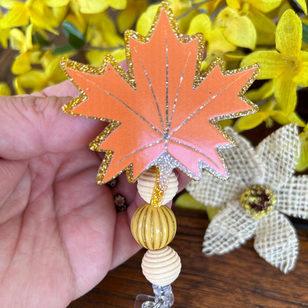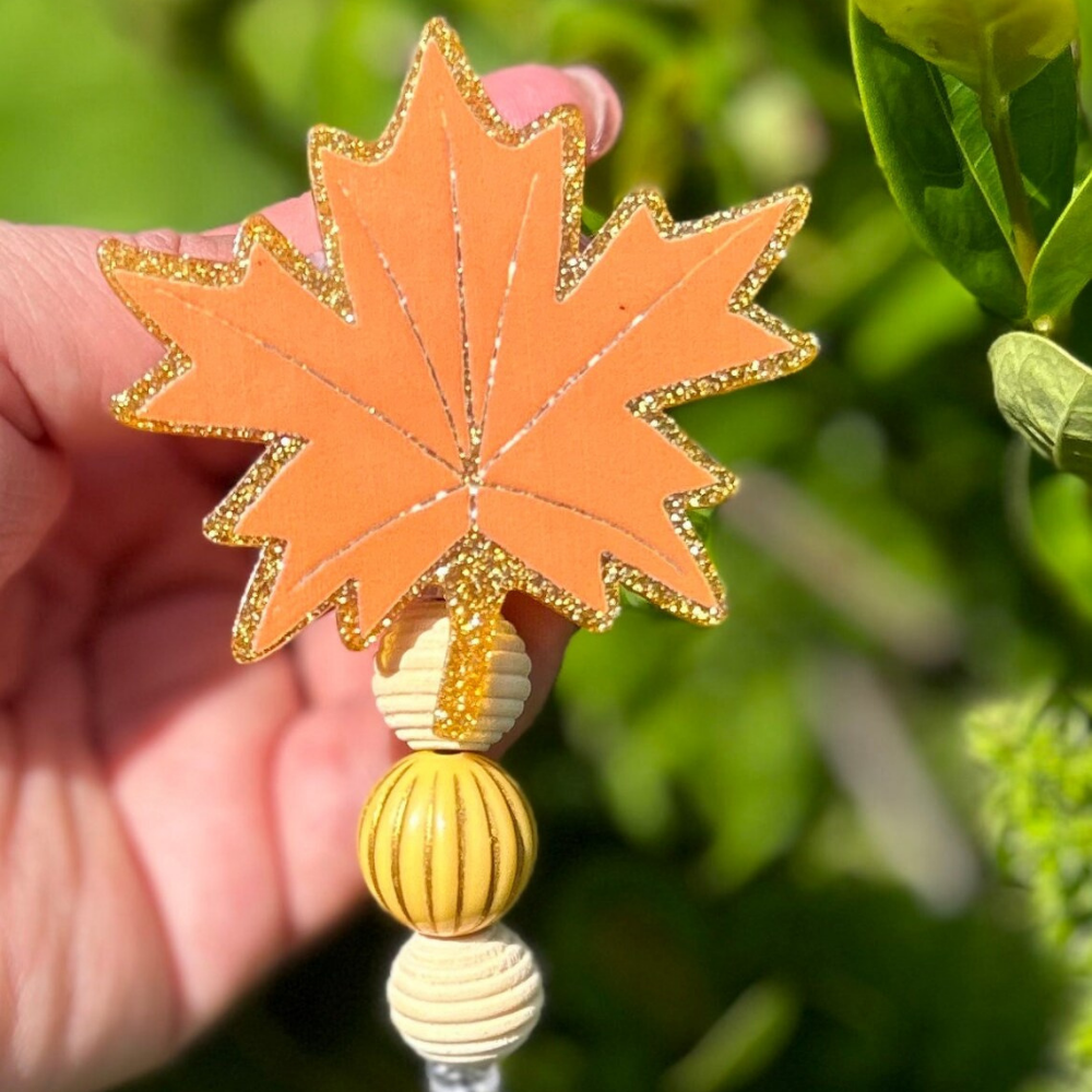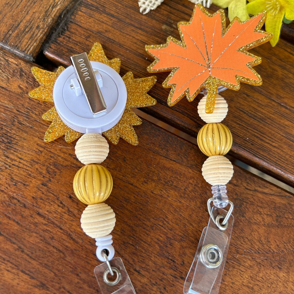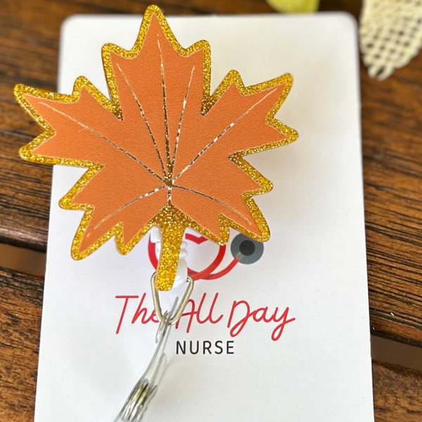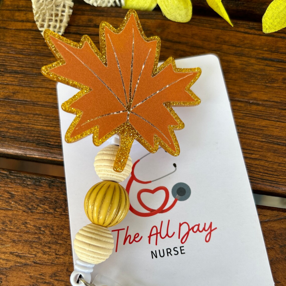 Maple Leaf Nurse Badge Reel - Retractable ID Holder, Beaded or Plain