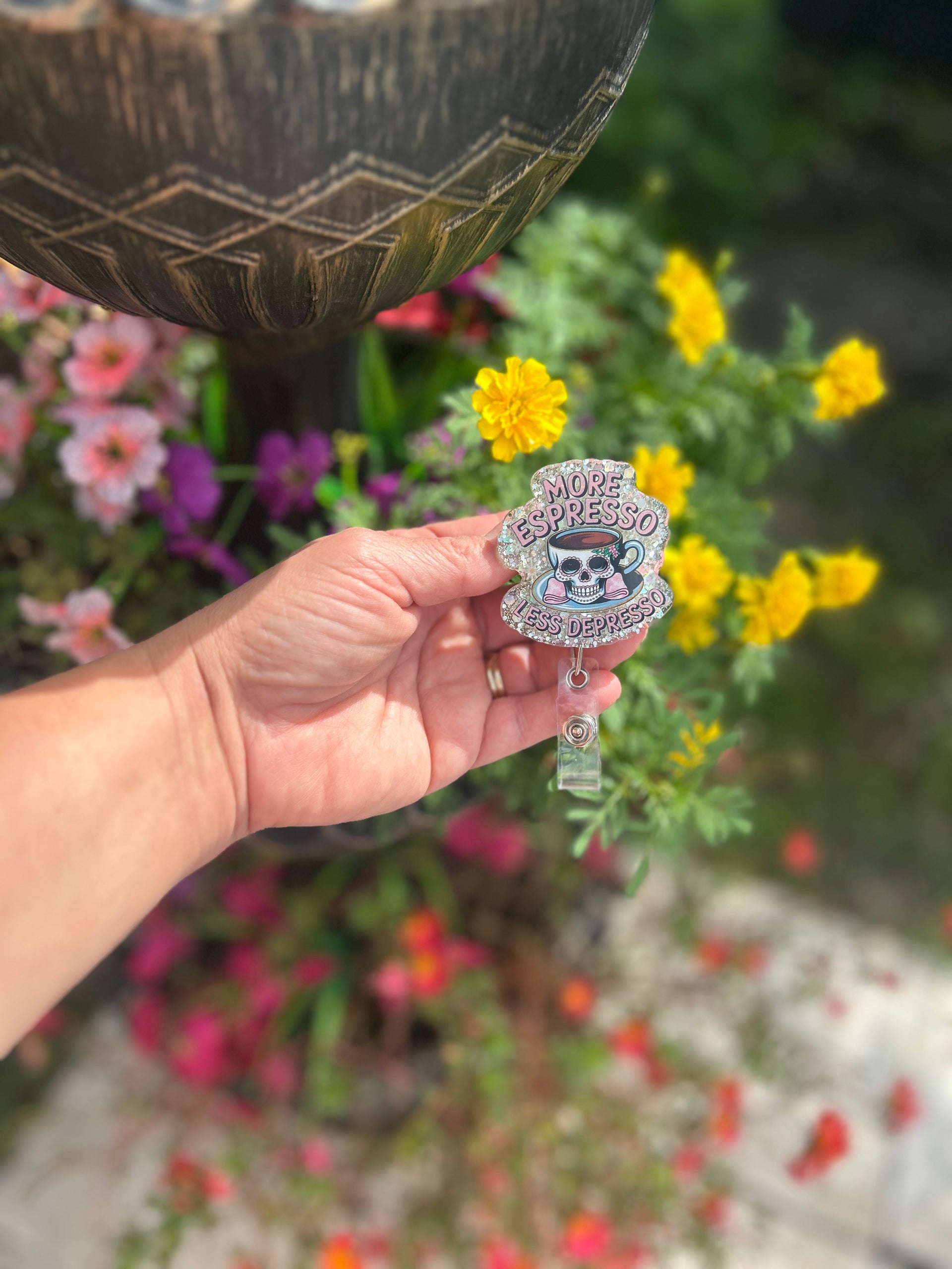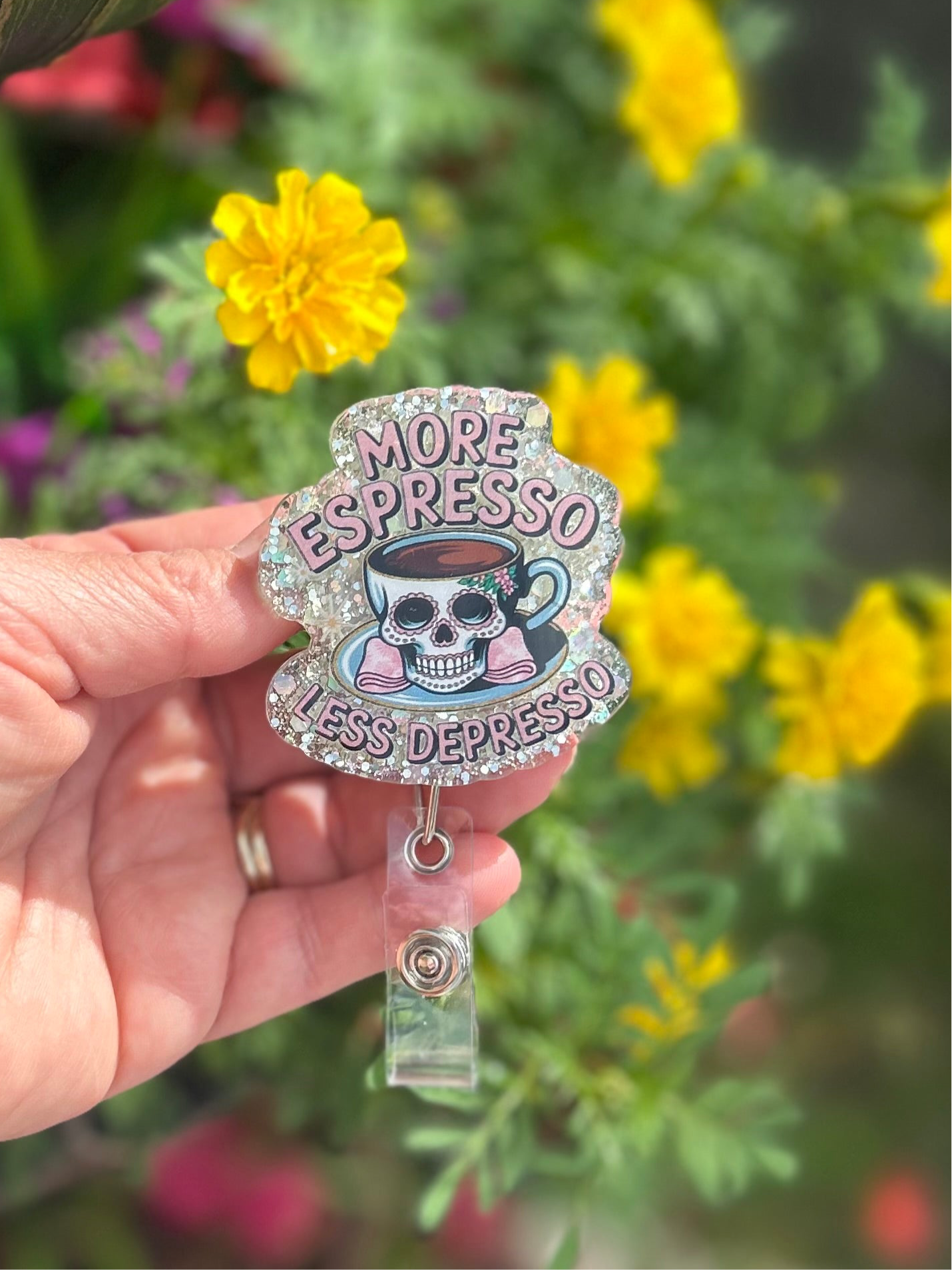 Coffee first, always ☕💀 This “More Espresso, Less Depresso” badge reel is the ultimate nurse mood booster.