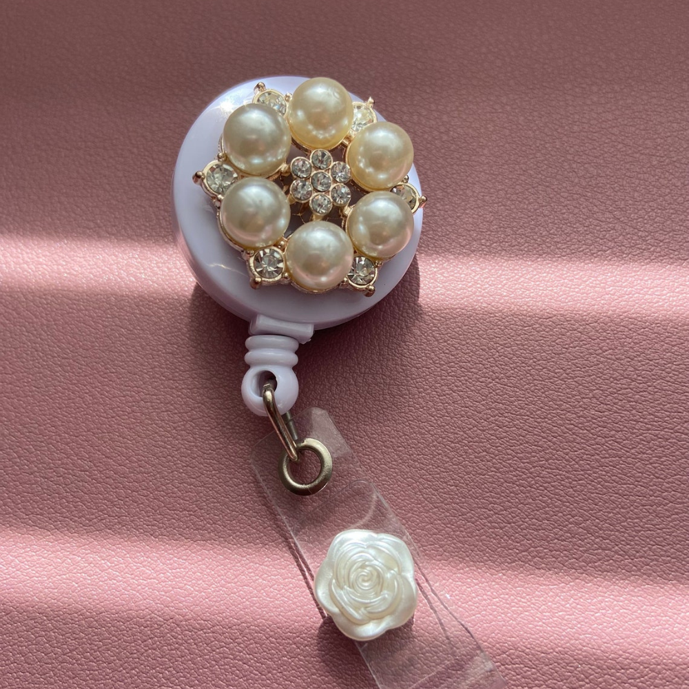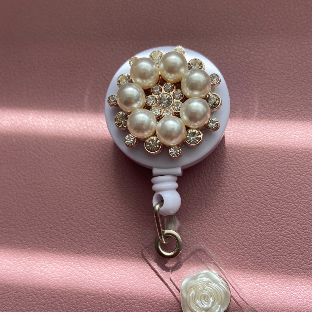 Add a touch of elegance to your daily routine—order your Pearl & Gold Badge Reel today! 🎀✨