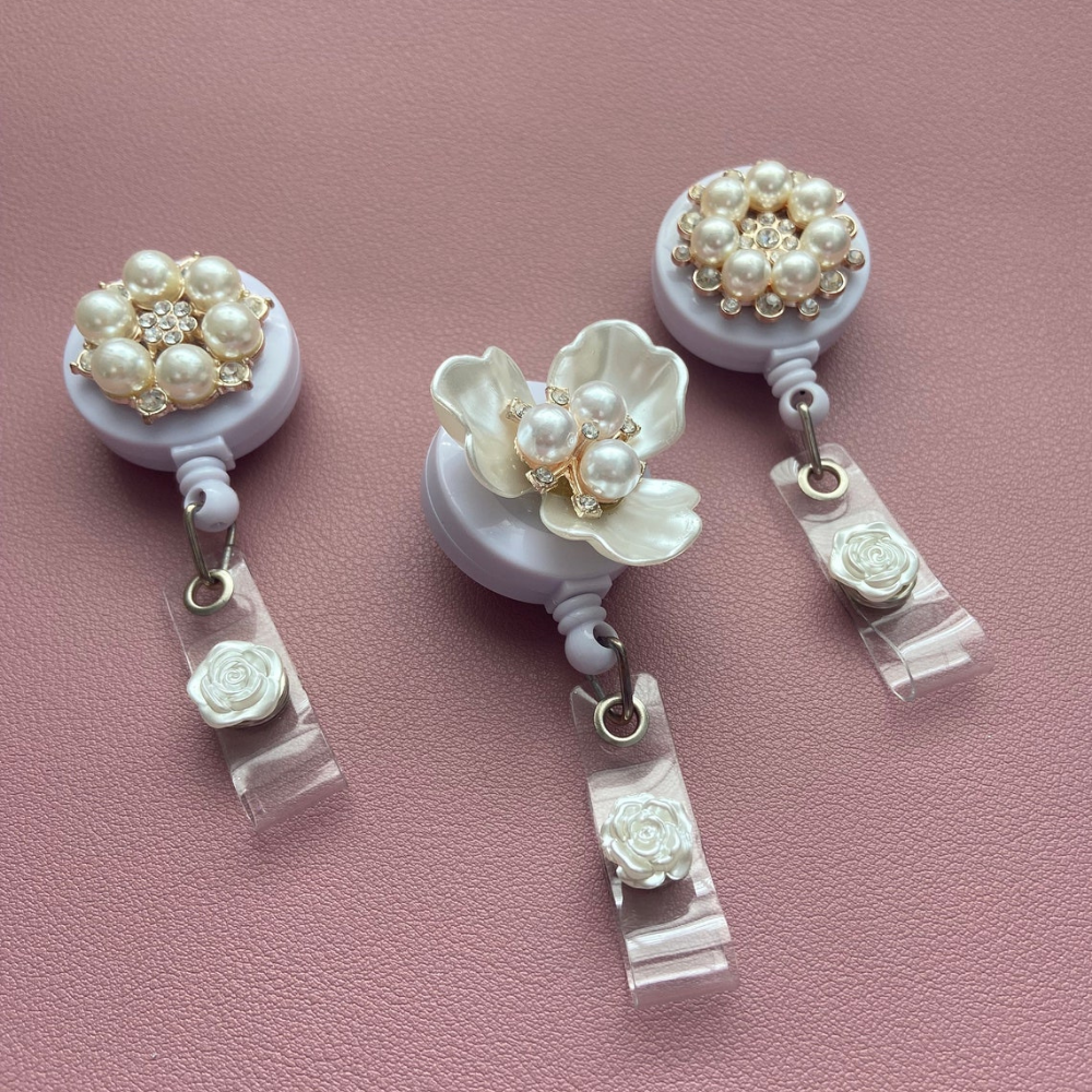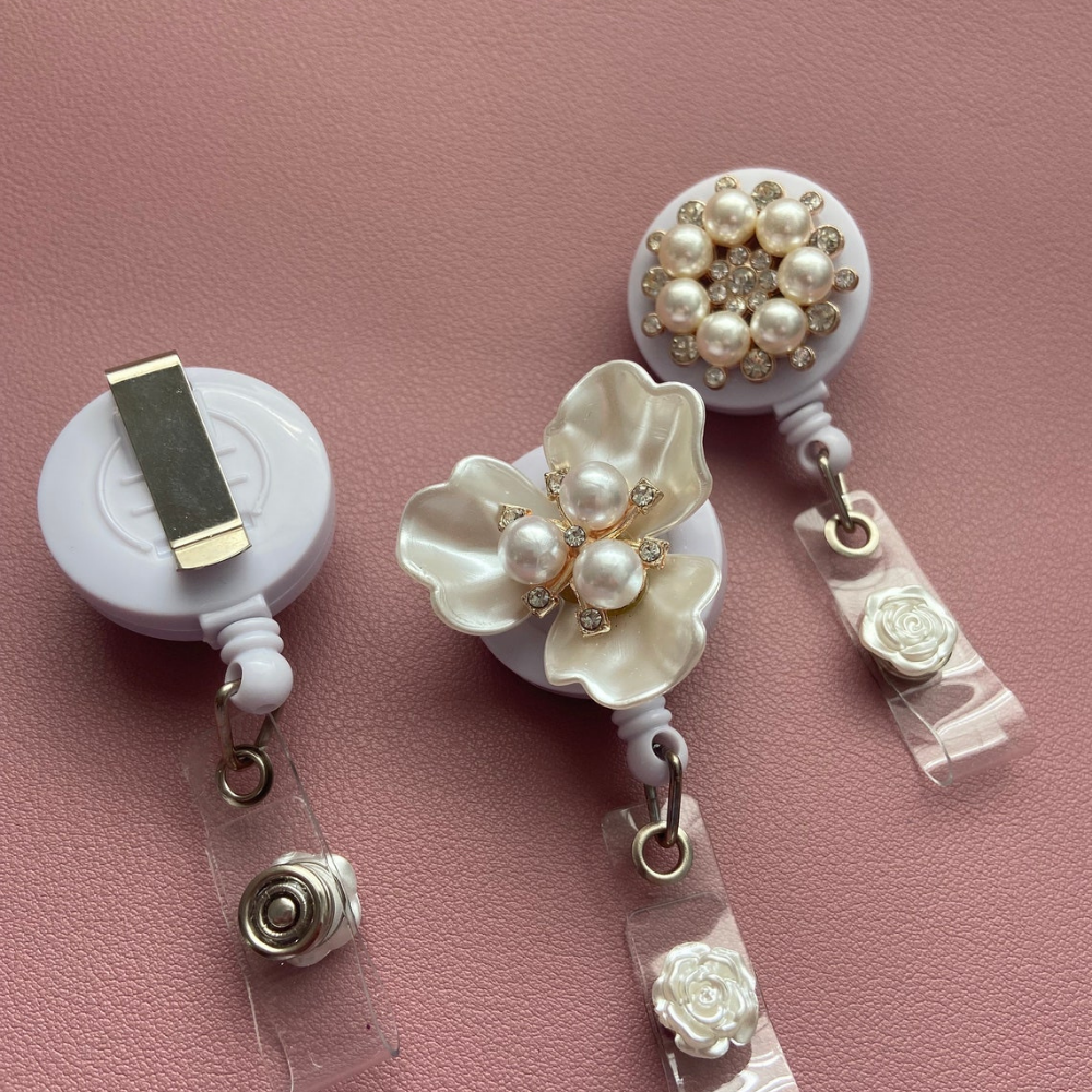 Adorned with lustrous pearls and a touch of rose gold, these badge reels add a refined accent to any outfit. Secure your ID cards in style and make a lasting impression at work or school.