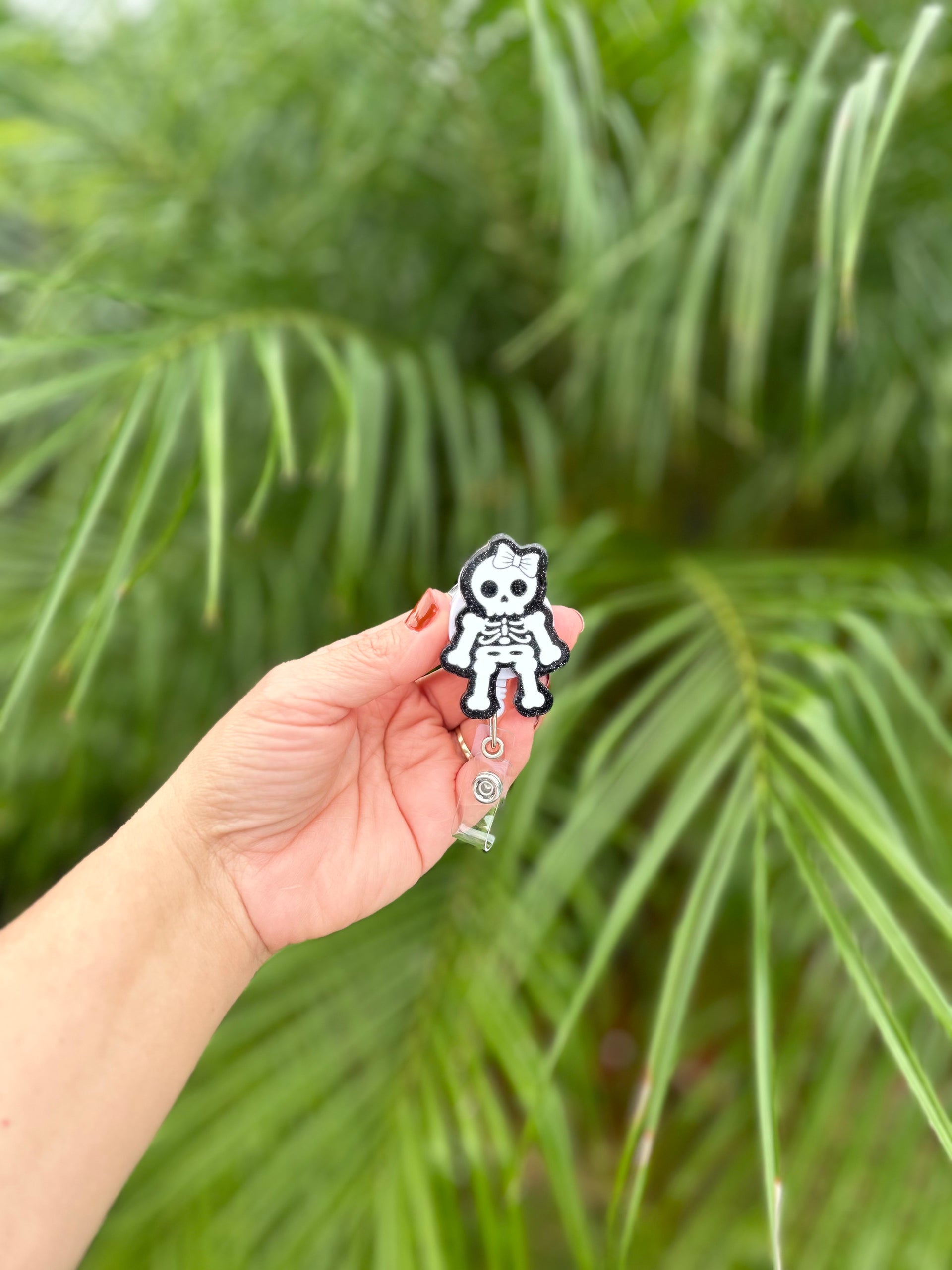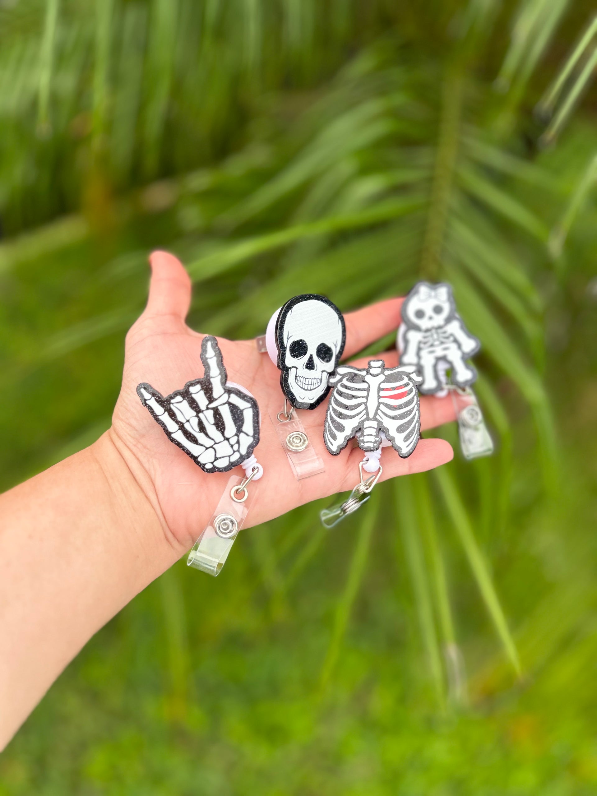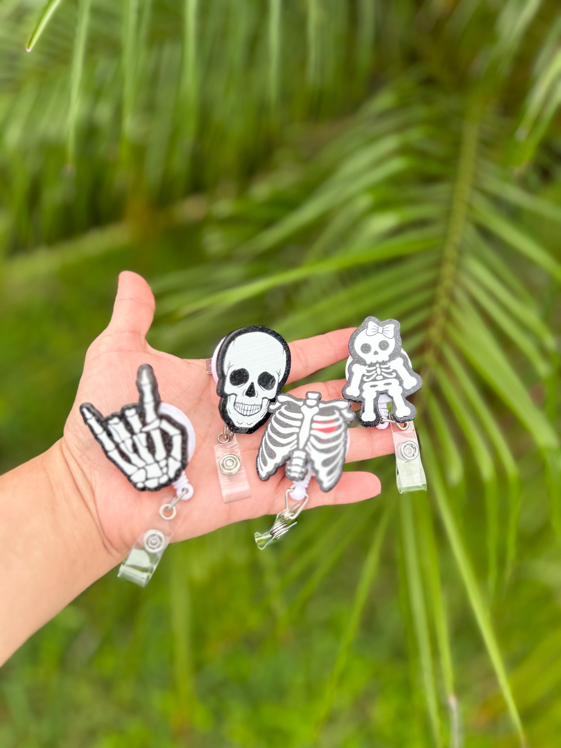 The Skeleton Badge Reel! Elevate your style with a touch of spooky sophistication. Whether you're a medical professional, teacher, or just someone who loves unique accessories, this badge reel is perfect for showcasing your personality.