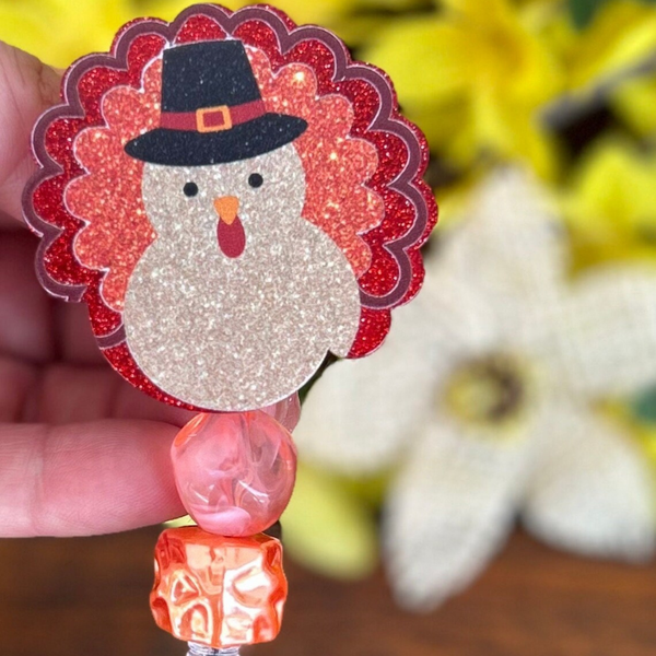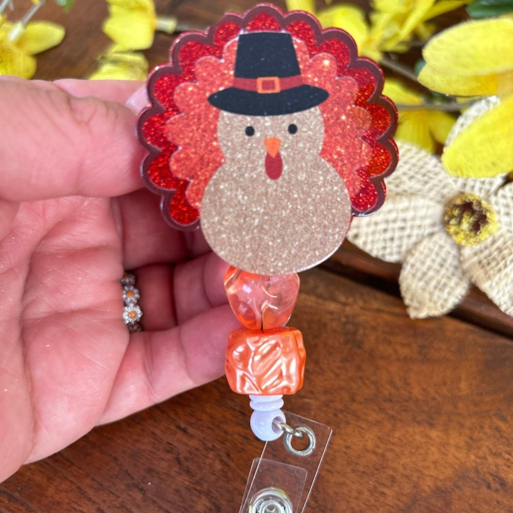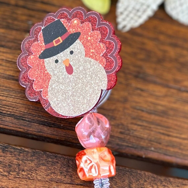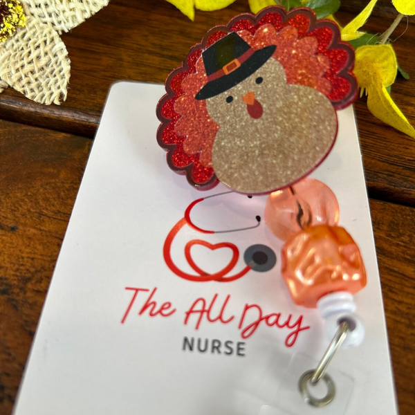 🦃 Add a festive touch to your work attire with our handcrafted Turkey Badge Reels! Made to order with love, these badge reels feature glitter accents for a playful shimmer and come in two styles: with or without beautiful bead combinations. Perfect for healthcare professionals, students, teachers, and anyone who needs to wear an ID badge regularly. Celebrate the fall season in style! 🍂
