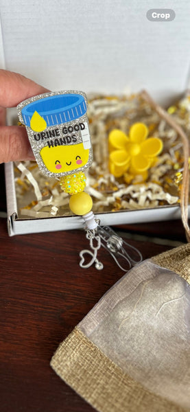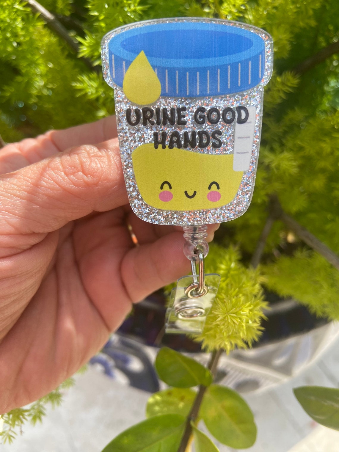 URINE Good Hands Badge Reel Retractable Cute Badge Holder Nurse Badge Reel for Nurses