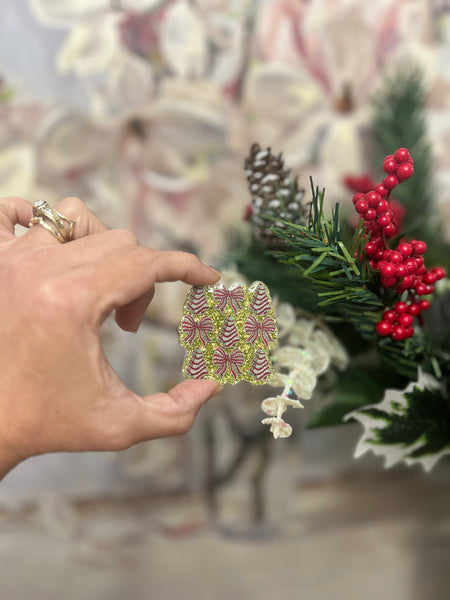 | Style | Grinch Bow, It’s Me Grinch, Grinch with hat and Bows, Green Trees and Bows, It’s Me Grinch Badge with Beads, In My Pink Christmas Era |