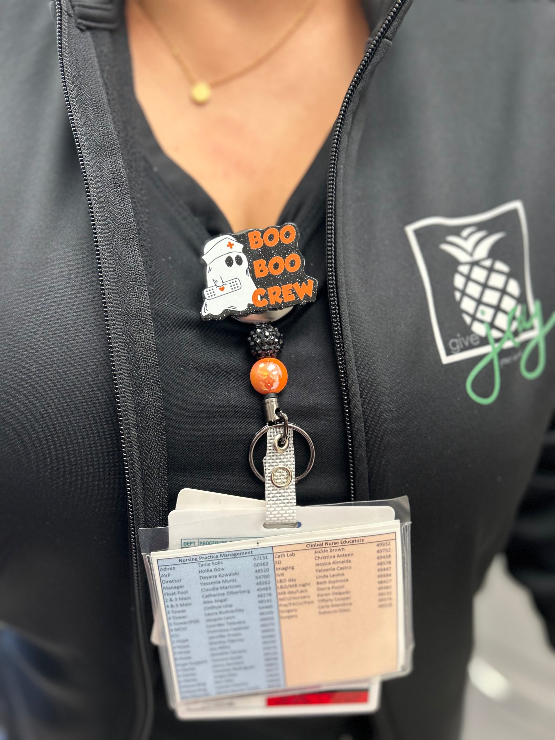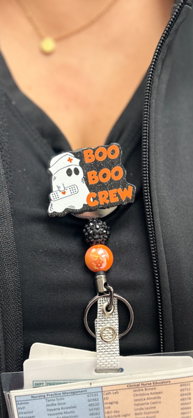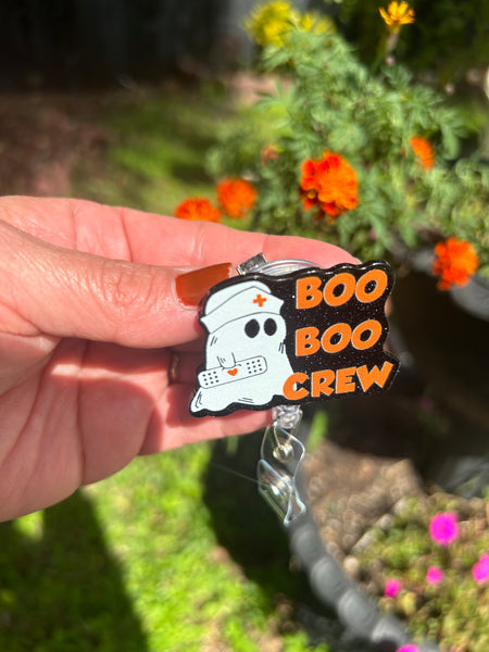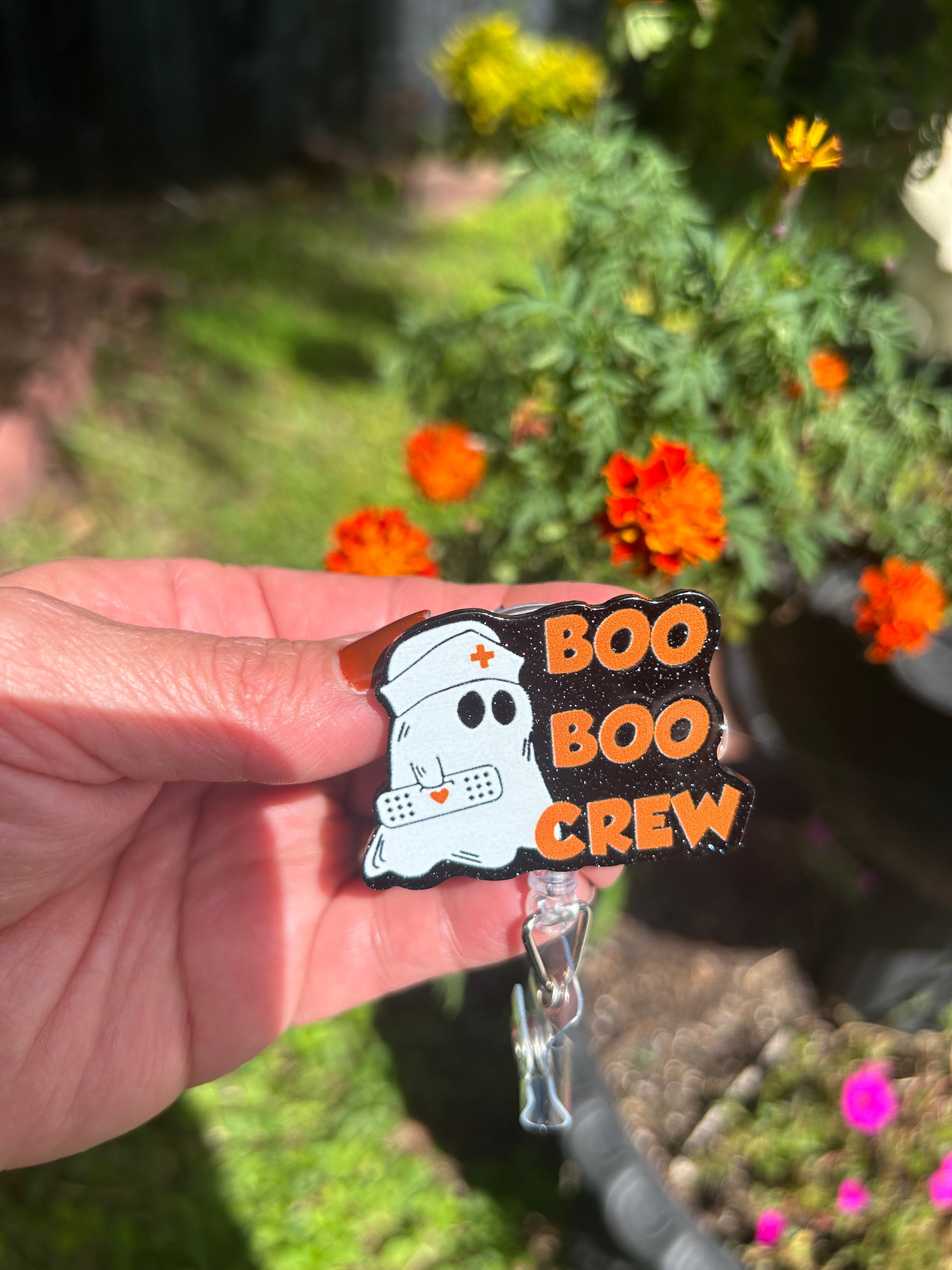 - Package Includes: 1 Boo Boo Crew Ghost Badge Reel.