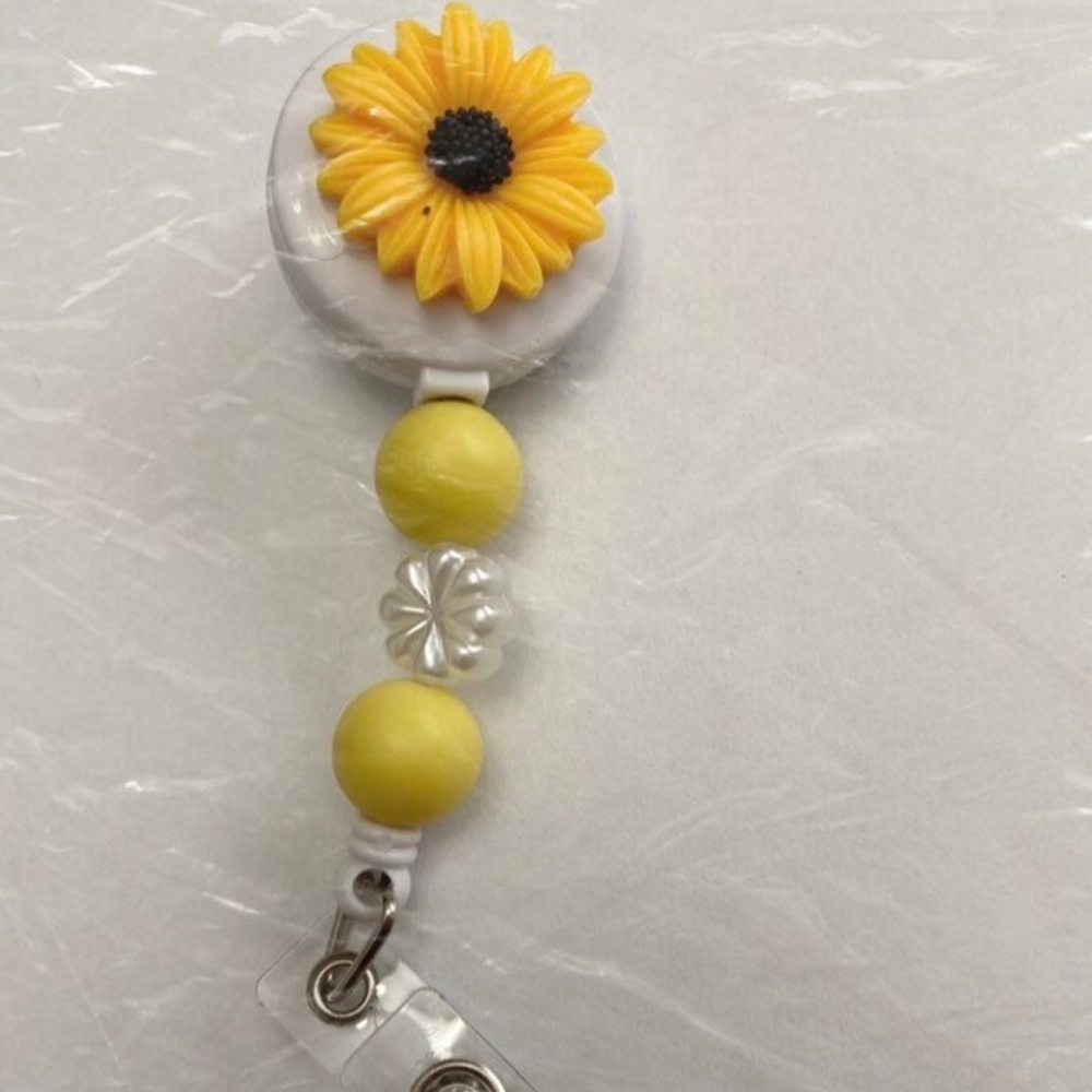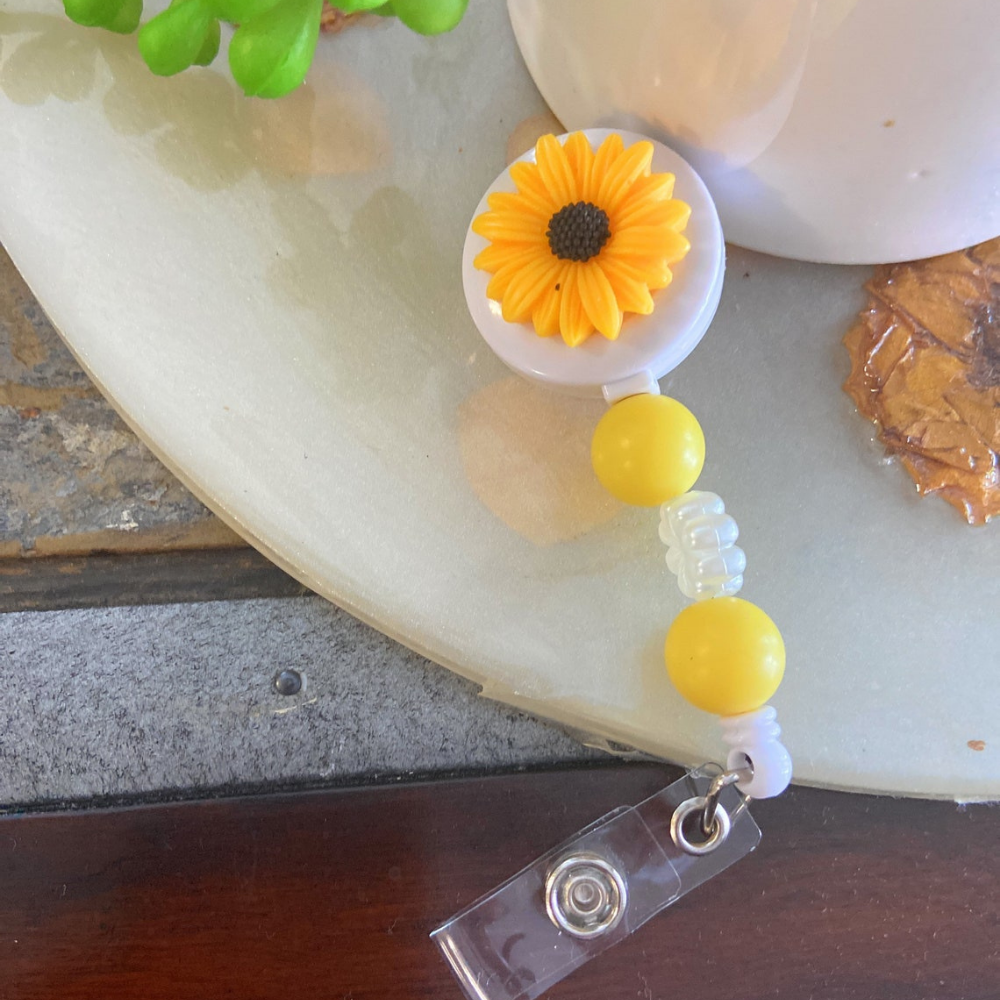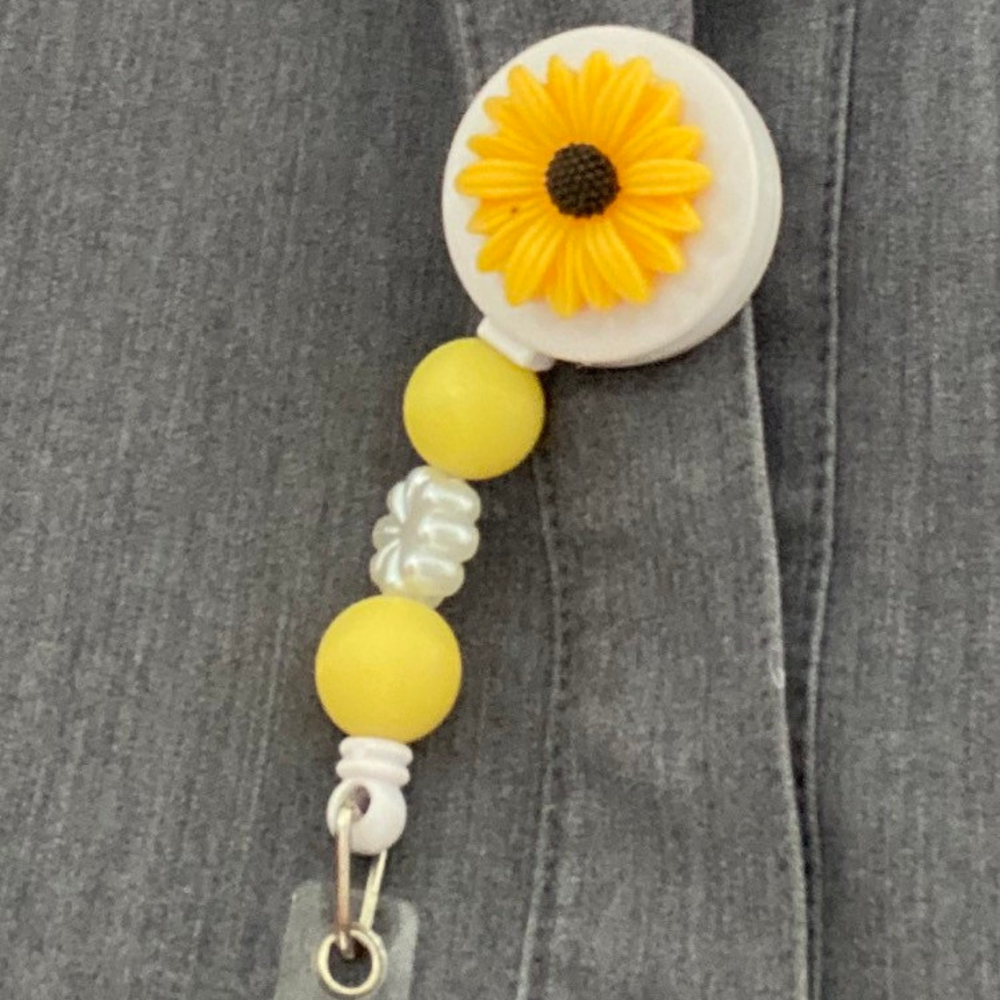 Flower Badge Reels for Nurses - Yellow Daisy Resin ID Holder