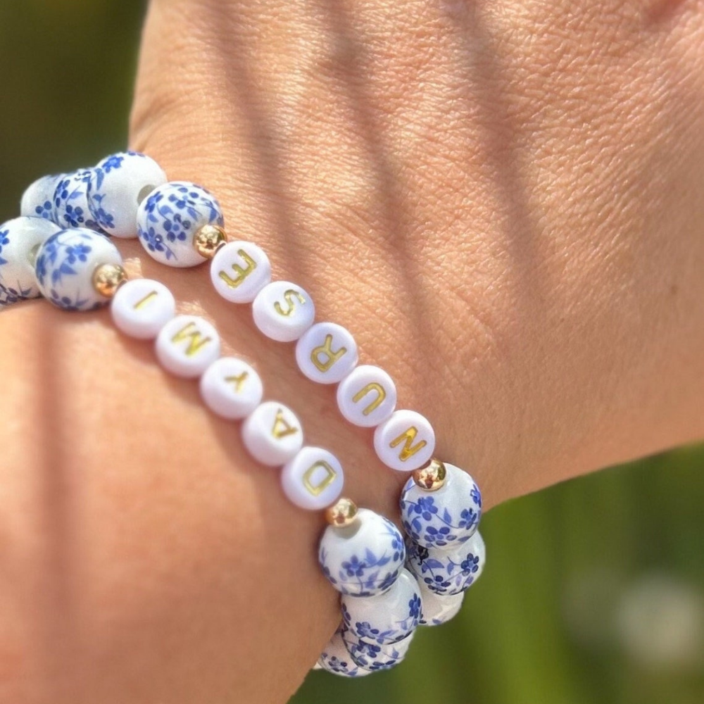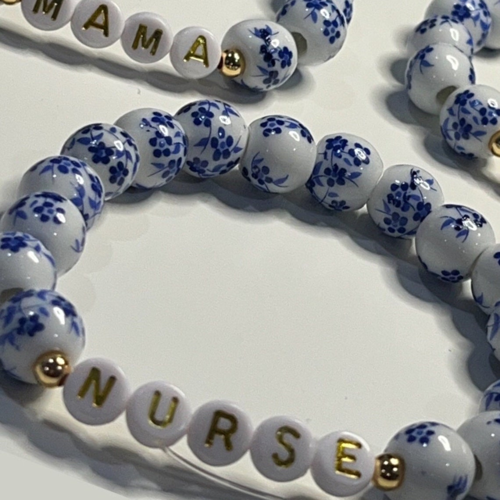 🌸💙 Celebrate Nurses Week with our Personalized Blue and White Floral Ceramic Bracelets! Made to order and crafted with love, these elegant bracelets are perfect for honoring nurses, celebrating Mother’s Day, or showing appreciation to friends and family. Each piece features porcelain beads with a delicate blue floral design and an 18k gold-plated disk spacer. Personalize it with a name, an inspirational word, or "nurse" for a truly unique touch.
