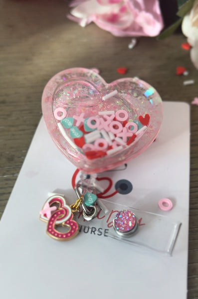 ✨ Add some love to your workday with this adorable Valentine’s shaker badge reel! Handcrafted with care, this reel is perfect for nurses, teachers, and anyone who wants to make their ID badge as unique as they are. 💕