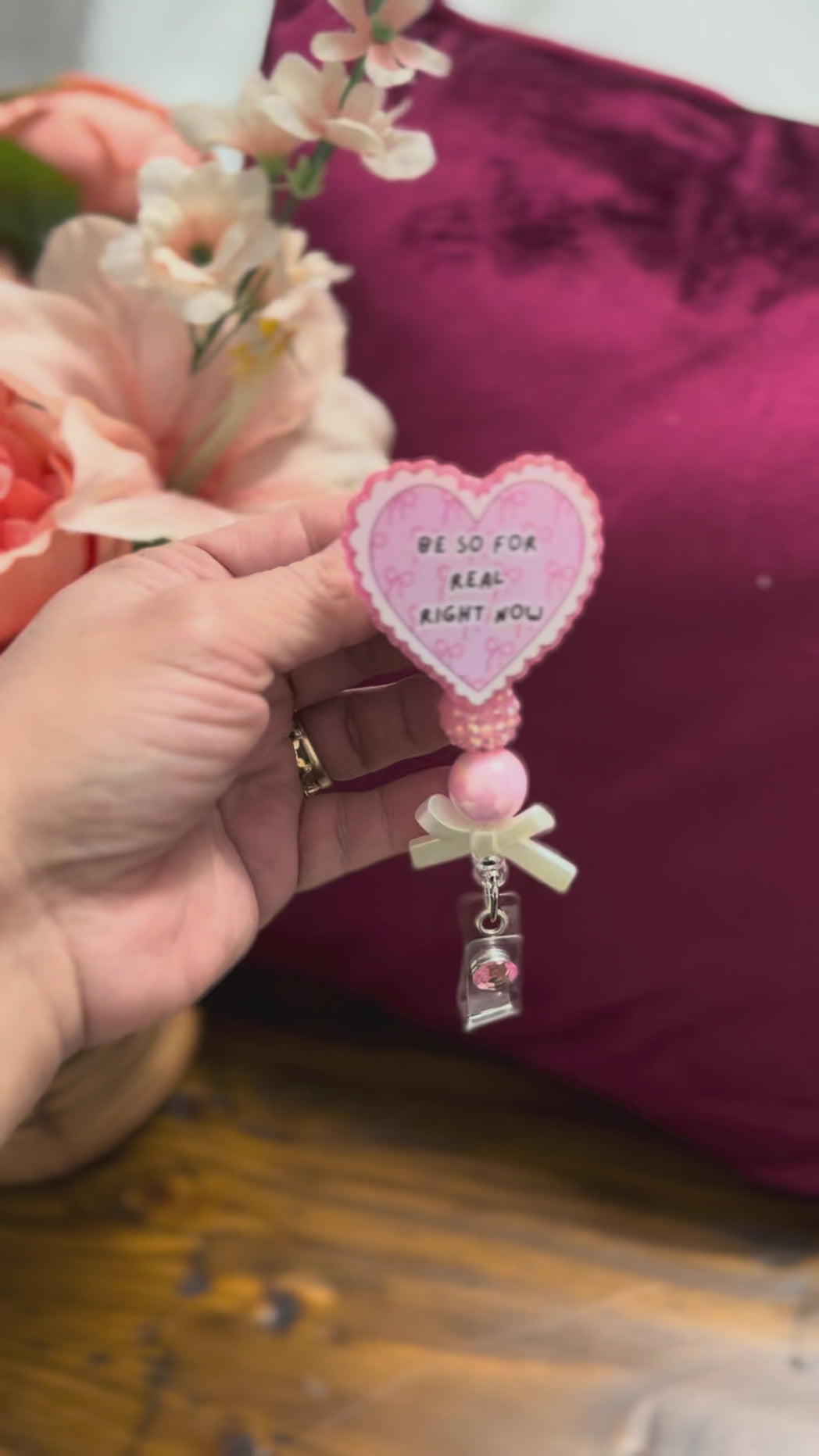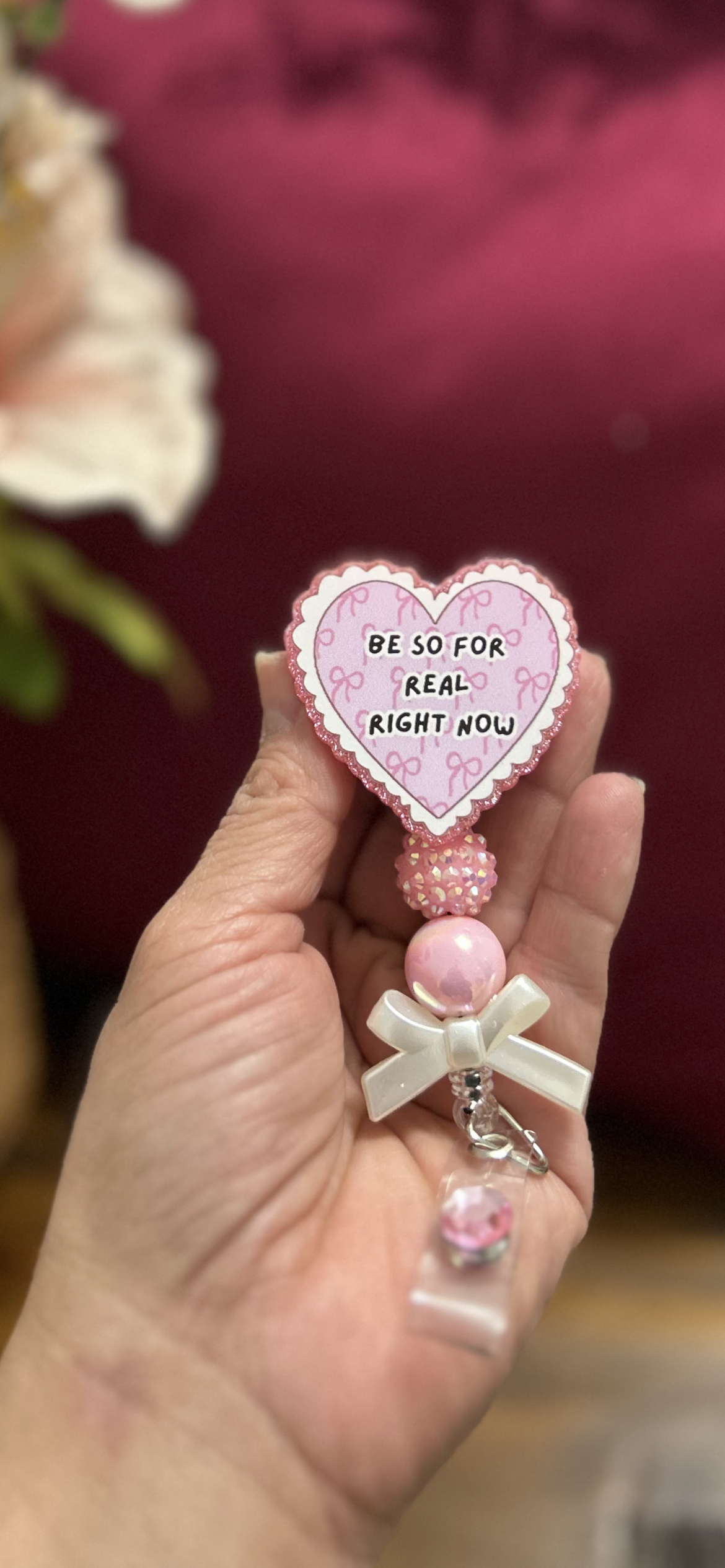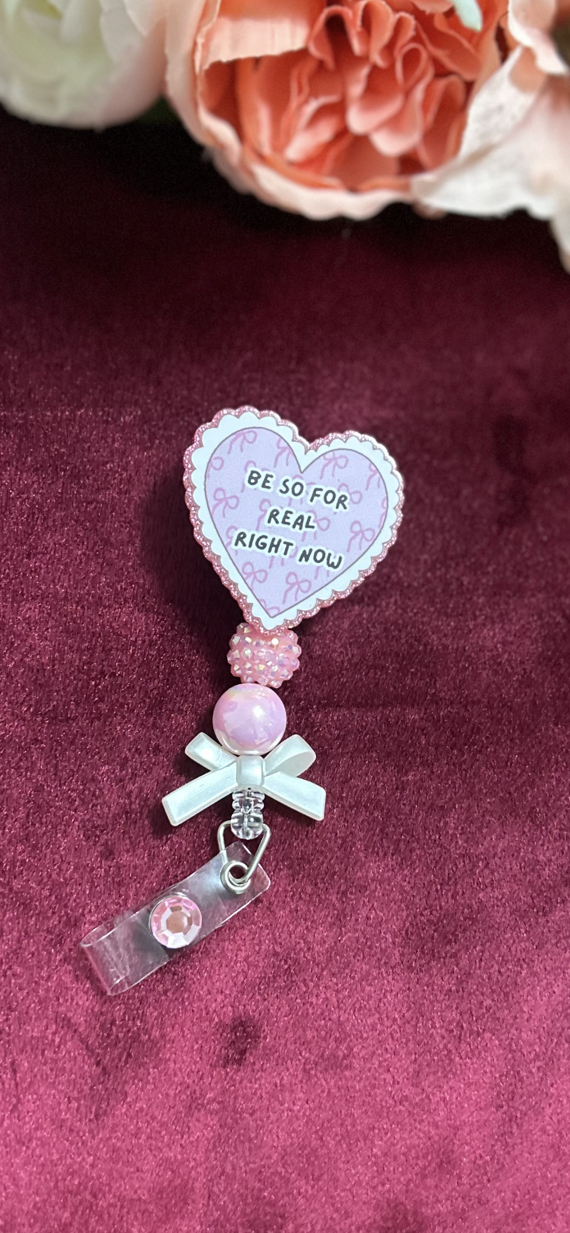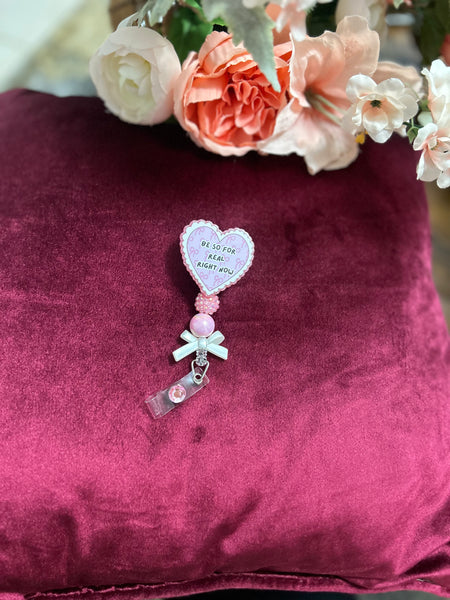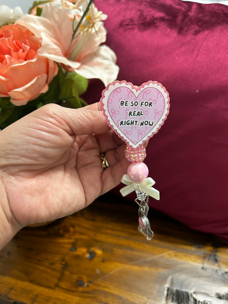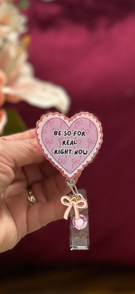Cute Nurse Badge Reel | “Be So For Real Right Now” Heart Badge | Coquette Nurse ID Holder | Pink Nurse Badge