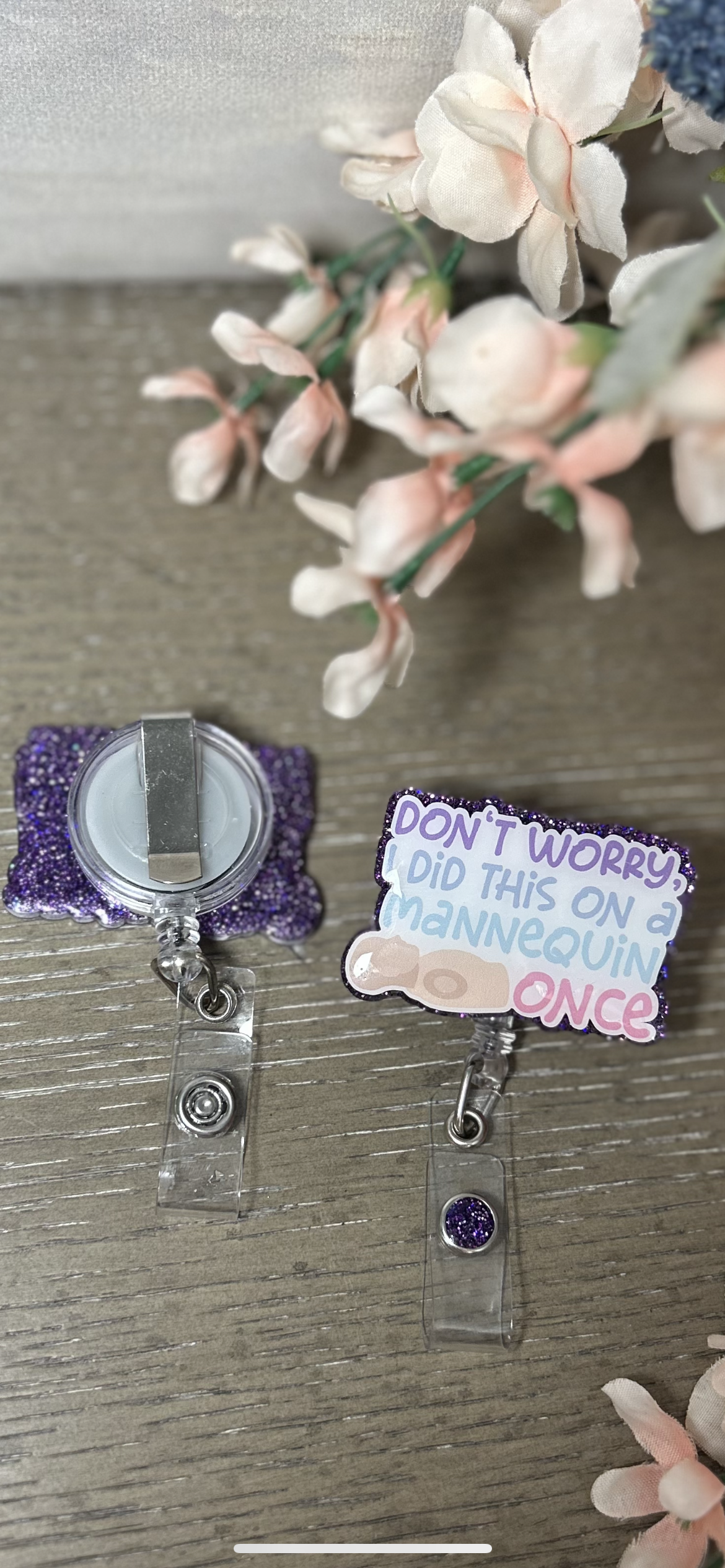 Perfect for nurses with a sense of humor and a little bit of sass! This badge reel features the phrase “Don’t worry, did this on a mannequin once” — because sometimes, we all need a reminder that we’ve got this! 💪👩⚕️